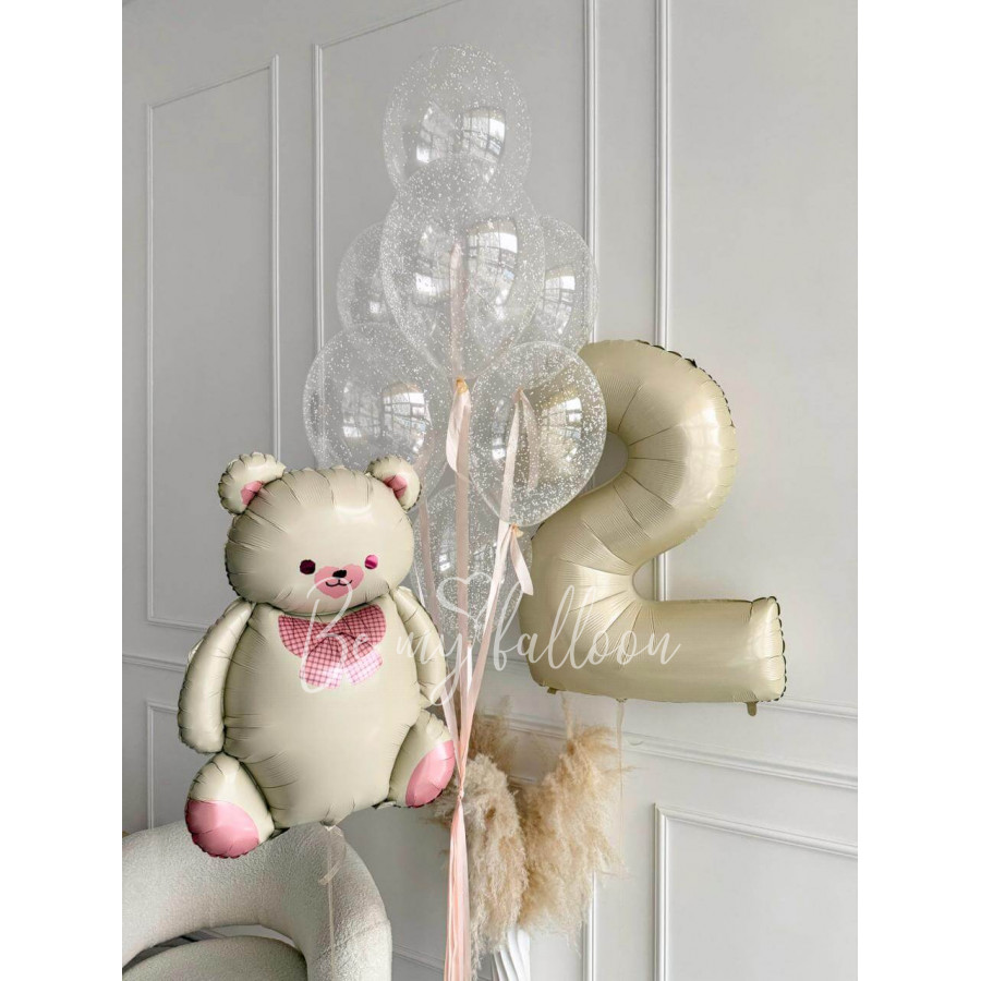 Шар из фольги "Мишка с бантом бежевый" - 1 шт.